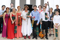 Mit Werken von Friedman, Chopin, Šíma, Piazzolla, Khatschaturjan, Kovács und Bernstein begeisterten die derzeitigen Stipendiatinnen und Stipendiaten Doğa Saçılık, Amely Preuten, Goran Stevanović und Valeriya Myrosh gemeinsam mit ihren Freunden über zwei Stunden lang das Publikum im vielharmonischen Garten.
