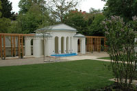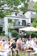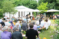 Der Pavillon verwandelt den mit vielen Pflanzen und Grün angelegten Garten in einen kleinen Sommernachtraum. Das perfekte Bühnenbild für das alljährliche Serenadenkonzert.