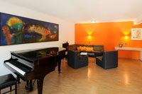 Der große gemütlich gestaltete Gemeinschaftsraum mit einem zweiten Flügel bietet den Stipendiatinnen und Stipendiaten Raum für gemeinsame entspannende Freizeitaktivitäten und kammermusikalische Konzerte zusammen mit Gästen.